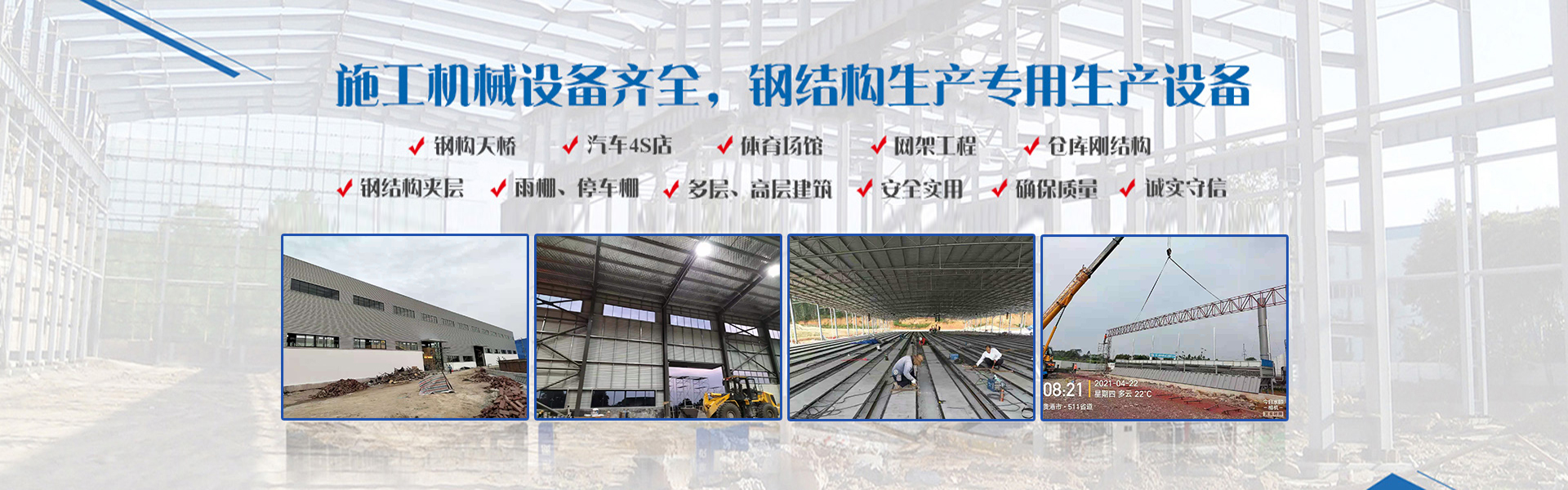 公司綜合實(shí)力雄厚,施工機(jī)械設(shè)備齊全,配置有多條焊接H型鋼生產(chǎn)線,箱型鋼生產(chǎn)線,以及C/Z型鋼生產(chǎn)線,樓承板、彩鋼板、夾芯板等專用生產(chǎn)設(shè)備,產(chǎn)品質(zhì)量可靠。